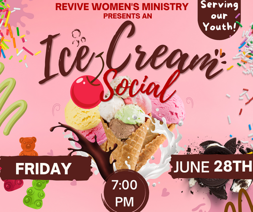 Ladies, we will be sponsoring & hosting an ice cream social for our youth during VBS Friday June 28th @ 7PM! Please, click the link below and click the Register Now button and choose an item to bring! Come out and serve and support our Youth!